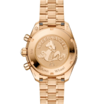 La montre possède un bracelet en or Moonshine™ 18K poli et satiné doté d’un système de réglage confort breveté OMEGA. Son fond de boîtier vissé est estampé d’un médaillon Hippocampe. La montre est animée par le calibre OMEGA Co-Axial 3330.