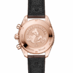 La montre repose sur un bracelet en cuir brun fermé par une boucle déployante en or Sedna™ 18K. Son fond de boîtier vissé est estampé d’un médaillon Hippocampe. La montre est animée par le calibre OMEGA Co-Axial 3330.