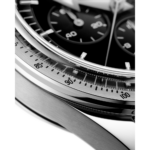 Sa lunette abrite une échelle tachymétrique en émail noir, parachevée du célèbre point au-dessus du chiffre 90 et d’un point en diagonale du chiffre 70.