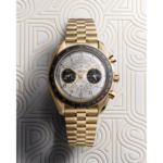 Présentée sur un bracelet en or Moonshine™ 18K doté du système de réglage confort breveté OMEGA, la montre présente un compteur de petite seconde à 9 heures et un totalisateur de 60 minutes et 12 heures à 3 heures. La montre est animée par le mouvement OMEGA Co-Axial Master Chronometer 9909.