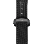 Animée par le calibre OMEGA Co-Axial 9300, cette montre audacieuse possède un bracelet en nylon noir et un nouveau fermoir repliable en céramique et titane. Les aiguilles sont en or blanc 18K polies au diamant, à l'exception de l'aiguille centrale des secondes à pointe rouge, polie et rhodiée.