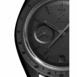 Visible à travers le fond du boîtier, le mouvement Co-Axial Master Chronometer Calibre 9900 à remontage automatique OMEGA arbore une finition spéciale dont un rotor, une platine et des ponts revêtus de noir mat, ainsi que des gravures vernies. La montre est montée sur un bracelet en nylon noir doté d’une boucle déployante en céramique et d’une boucle déployante à ressort en titane céramisé.