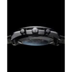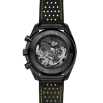 Présentée sur un bracelet en caoutchouc noir perforé laissant apparaître un insert en caoutchouc jaune, cette montre est intégralement façonnée en céramique noire, avec des touches de vernis jaune sur les aiguilles des secondes du chronographe et une échelle tachymétrique gravée au laser sur la fenêtre revêtue d'émail blanc. Le compteur de petite seconde (brevet en cours) comprend également une aiguille en titane grade 5 en forme de fusée Saturn V. Cette forme 3D est obtenue par tournage laser, tandis que les couleurs résultent de la pose d'un vernis blanc, d'une ablation et d'un noircissement au laser.