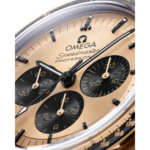 Inspirée de la Speedmaster 4e génération, cette Moonwatch de 42 mm, dont le boîtier et le bracelet sont en or Moonshine™ 18K, arbore un cadran à étage soleillé en or Moonshine™ 18K et des compteurs et index noircis. Sa lunette en céramique noire, dotée d’une échelle tachymétrique en Ceragold™ OMEGA, est frappée du point signature au-dessus du chiffre 90.