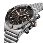 La Super Chronomat est inspirée de la Chronomat originale des années 1980, créée par Breitling pour les pilotes des patrouilles aériennes. La Super Chronomat, la plus audacieuse des montres Chronomat, est dotée de plusieurs inserts en céramique – sur la lunette, les poussoirs de chronographe et la couronne – ainsi que d’un bracelet en caoutchouc d’inspiration Rouleaux. Par ailleurs, cette montre sportive polyvalente ne commettra pas d’impair en matière d’élégance et de style.
