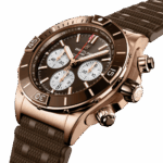 La Super Chronomat est inspirée de la Chronomat originale des années 1980, créée par Breitling pour les pilotes des patrouilles aériennes. La Super Chronomat, la plus audacieuse des montres Chronomat, est dotée de plusieurs inserts en céramique – sur la lunette, les poussoirs de chronographe et la couronne – ainsi que d’un bracelet en caoutchouc d’inspiration Rouleaux. Par ailleurs, cette montre sportive polyvalente ne commettra pas d’impair en matière d’élégance et de style.