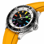 La nouvelle Superocean retrace les célèbres codes esthétiques de la Slow Motion en ajoutant des fonctions modernes, telles qu’une lunette incrustée en céramique résistante aux rayures et des cadrans aux couleurs vives. Les aiguilles larges et les index avec un dégradé arc-en-ciel de revêtement luminescent Super-LumiNova® facilitent la lisibilité sous l’eau (pour encore plus de plaisir). La montre est étanche jusqu’à 300 m (1000 ft) et résiste également aux chocs, au sable et à l’eau salée. La version en bronze est équipée d’un alliage spécial d’une haute résistance à la corrosion. Toutefois, une légère patine apparaîtra au fil du temps et rendra la montre encore plus unique. Le bracelet en caoutchouc possède une boucle déployante qui permet des micro-ajustements à 15 mm près pour un port plus facile avec les tops thermiques et les combinaisons de plongée. Pour une question de sécurité, la lunette est unidirectionnelle.