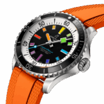 La nouvelle Superocean retrace les célèbres codes esthétiques de la Slow Motion en ajoutant des fonctions modernes, telles qu’une lunette incrustée en céramique résistante aux rayures et des cadrans aux couleurs vives. Les aiguilles larges et les index avec un dégradé arc-en-ciel de revêtement luminescent Super-LumiNova® facilitent la lisibilité sous l’eau (pour encore plus de plaisir). La montre est étanche jusqu’à 300 m (1000 ft) et résiste également aux chocs, au sable et à l’eau salée. La version en bronze est équipée d’un alliage spécial d’une haute résistance à la corrosion. Toutefois, une légère patine apparaîtra au fil du temps et rendra la montre encore plus unique. Le bracelet en caoutchouc possède une boucle déployante qui permet des micro-ajustements à 15 mm près pour un port plus facile avec les tops thermiques et les combinaisons de plongée. Pour une question de sécurité, la lunette est unidirectionnelle.
