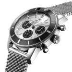 Dotée des aiguilles en triangle légendaires et d’une lunette unidirectionnelle surmontée d’un anneau en céramique poli, la Superocean Heritage est une montre de plongée élégante. Disponible dans un large éventail de matières, acier inoxydable et or rouge 18 carats inclus, la Superocean Heritage B01 Chronograph 44 est proposée avec un choix de cadrans noirs, bleus, argent ou verts. Proposée avec un bracelet assorti en maille ou un bracelet en caoutchouc façon maille fermés par une boucle déployante, cette montre Superocean Heritage est animée par le Calibre manufacture Breitling 01, un chronomètre certifié COSC.