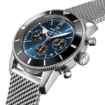 Dotée des aiguilles en triangle légendaires et d’une lunette unidirectionnelle surmontée d’un anneau en céramique poli, la Superocean Heritage est une montre de plongée élégante. Disponible dans un large éventail de matières, acier inoxydable et or rouge 18 carats inclus, la Superocean Heritage B01 Chronograph 44 est proposée avec un choix de cadrans noirs, bleus, argent ou verts. Proposée avec un bracelet assorti en maille ou un bracelet en caoutchouc façon maille fermés par une boucle déployante, cette montre Superocean Heritage est animée par le Calibre manufacture Breitling 01, un chronomètre certifié COSC.