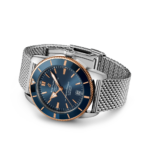 Dotée des aiguilles en triangle légendaires et d’une lunette unidirectionnelle surmontée d’un anneau en céramique poli, la Superocean Heritage est une montre de plongée élégante. Disponible dans un large éventail de matières, acier inoxydable et or rouge 18 carats inclus, la Superocean Heritage B20 Automatic est proposée avec un choix de cadrans noirs, bleus ou verts. Munie d’un bracelet assorti en maille ou un bracelet en caoutchouc façon maille fermés par une boucle déployante, cette montre Superocean Heritage est animée par le Calibre manufacture Breitling B20, un chronomètre certifié COSC basé sur le Calibre Tudor MT5612.