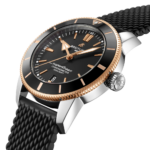 Dotée des aiguilles en triangle légendaires et d’une lunette unidirectionnelle surmontée d’un anneau en céramique poli, la Superocean Heritage est une montre de plongée élégante. Disponible dans un large éventail de matières, acier inoxydable et or rouge 18 carats inclus, la Superocean Heritage B20 Automatic est proposée avec un choix de cadrans noirs ou bleus. Munie d’un bracelet assorti en maille ou un bracelet en caoutchouc façon maille fermés par une boucle déployante, cette montre Superocean Heritage est animée par le Calibre manufacture Breitling B20, un chronomètre certifié COSC basé sur le Calibre Tudor MT5612.