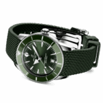 La Superocean Heritage n’est pas une montre de plongée ordinaire et ne l’a jamais été. Lorsque Breitling l’a lancée pour la première fois en 1957, elle s’est démarquée des autres montres de plongée de l'époque. Le modèle Ref. 1004 (une montre épurée à trois aiguilles) et le modèle Ref. 807 (le premier chronographe de plongée au monde) ne se contentaient pas de permettre l’exploration du monde sous-marin ; ils étaient aussi conçus pour le faire avec style. Les aiguilles en forme de lance et de flèche, la lunette rotative en aluminium anodisé et les proportions naturellement épurées en ont fait le modèle préféré des aventuriers du monde entier, passionnés par la mer et le style. Aujourd’hui, cette philosophie demeure au cœur de la Superocean Heritage. Sa conception contemporaine renferme toujours l’esprit des années 1950.La dernière Superocean Heritage reprend tous les éléments clés de l’original et les perfectionne. La collection est équipée pour la première fois du mouvement B31, le calibre manufacture exclusif à trois aiguilles de Breitling. Une lunette incrustée de céramique ajoute une résistance exceptionnelle aux rayures, tandis que les bracelets intégrés en maille métallique ou en caoutchouc tressé s’adaptent parfaitement au boîtier et sont fixés par des boucles déployantes pour une finition propre et étanche. Le discret guichet de date à six heures et les aiguilles originales (flèche pour les heures, lance pour les minutes) assurent la lisibilité et l’équilibre, en surface comme en profondeur.
