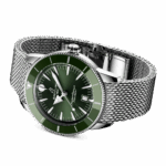 La Superocean Heritage n’est pas une montre de plongée ordinaire et ne l’a jamais été. Lorsque Breitling l’a lancée pour la première fois en 1957, elle s’est démarquée des autres montres de plongée de l'époque. Le modèle Ref. 1004 (une montre épurée à trois aiguilles) et le modèle Ref. 807 (le premier chronographe de plongée au monde) ne se contentaient pas de permettre l’exploration du monde sous-marin ; ils étaient aussi conçus pour le faire avec style. Les aiguilles en forme de lance et de flèche, la lunette rotative en aluminium anodisé et les proportions naturellement épurées en ont fait le modèle préféré des aventuriers du monde entier, passionnés par la mer et le style. Aujourd’hui, cette philosophie demeure au cœur de la Superocean Heritage. Sa conception contemporaine renferme toujours l’esprit des années 1950.La dernière Superocean Heritage reprend tous les éléments clés de l’original et les perfectionne. La collection est équipée pour la première fois du mouvement B31, le calibre manufacture exclusif à trois aiguilles de Breitling. Une lunette incrustée de céramique ajoute une résistance exceptionnelle aux rayures, tandis que les bracelets intégrés en maille métallique ou en caoutchouc tressé s’adaptent parfaitement au boîtier et sont fixés par des boucles déployantes pour une finition propre et étanche. Le discret guichet de date à six heures et les aiguilles originales (flèche pour les heures, lance pour les minutes) assurent la lisibilité et l’équilibre, en surface comme en profondeur.