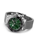 Dotée des aiguilles en triangle légendaires et d’une lunette unidirectionnelle surmontée d’un anneau en céramique poli, la Superocean Heritage est une montre de plongée élégante. Disponible dans un large éventail de matières, acier inoxydable et or rouge 18 carats inclus, la Superocean Heritage Chronograph 44 est proposée avec un choix de cadrans colorés. Munie d’un bracelet assorti en maille ou un bracelet en caoutchouc façon maille fermés par une boucle déployante, cette montre Superocean Heritage est animée par le Calibre Breitling 13, un chronomètre certifié COSC.