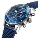 Dotée des aiguilles en triangle légendaires et d’une lunette unidirectionnelle surmontée d’un anneau en céramique poli, la Superocean Heritage est une montre de plongée élégante. Disponible dans un large éventail de matières, acier inoxydable et or rouge 18 carats inclus, la Superocean Heritage Chronograph 44 est proposée avec un choix de cadrans colorés. Munie d’un bracelet assorti en maille ou un bracelet en caoutchouc façon maille fermés par une boucle déployante, cette montre Superocean Heritage est animée par le Calibre Breitling 13, un chronomètre certifié COSC.