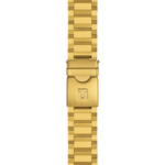 Cette version de la Tissot Supersport Chrono est dotée d'un mouvement à quartz Swiss Made et d'un boîtier en acier inoxydable 316L avec revêtement PVD or jaune. Le cadran noir avec affichage de la date est contrasté par des aiguilles et des index en or jaune. Le bracelet en acier inoxydable 316L, également revêtu de PVD or jaune, est équipé d'un système de changement rapide.