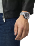 Tissot s'est inspiré de son partenariat avec la course moto pour créer une montre qui reflète le dynamisme des motos et l'émotion du sport.. La collection T-Race immerge le porteur dans un environnement mécanique et en réveille l'esprit. La lunette ressemble à un disque de frein, les poussoirs s'inspirent des guidons et les ailettes de refroidissement d'un moteur sont reproduites sur le côté du boîtier. La montre est étanche jusqu'à une pression de 10 bar (100 m), équipée d'un mouvement chronographe à quartz et dispose d'aiguilles des heures et des minutes marquantes recouvertes de SuperlumiNova.