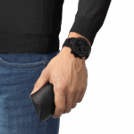 Tissot s'est inspiré de son partenariat avec la course moto pour créer une montre qui reflète le dynamisme des motos et l'émotion du sport. La collection T-Race immerge le porteur dans un environnement mécanique et en réveille l'esprit. La lunette ressemble à un disque de frein, les poussoirs s'inspirent des guidons et les ailettes de refroidissement d'un moteur sont reproduites sur le côté du boîtier. La montre est étanche jusqu'à une pression de 10 bar (100 m), équipée d'un mouvement chronographe à quartz et dispose d'aiguilles des heures et des minutes marquantes recouvertes de SuperlumiNova.