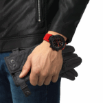Avec son nouveau design, la Tissot T-Race Chronograph gagne en élégance sans renier ses racines sportives. Inspirée par les partenariats entre Tissot et les courses de motos, la T-Race Chronograph reflète le dynamisme des motos et l'émotion du sport. La montre est étanche jusqu'à une pression de 10 bars (100 m), et est équipée d'un mouvement chronographe à quartz, ses aiguilles des heures et des minutes revêtues de SuperlumiNova. Cette version de la Tissot T-Race Chronograph est dotée d'une boîte en acier inoxydable revêtue de PVD noir, d'un cadran noir avec des accents rouges et d'un bracelet en caoutchouc assorti.