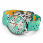 Fausto Coppi et Gino Bartali n’étaient pas seulement des champions ; ils incarnaient l’esprit sportif. Tous deux étaient ambassadeurs de Breitling à une époque où la marque était le chronométreur officiel des plus grandes courses cyclistes, et leur passion pour le sport a inspiré des millions de personnes. La Top Time B01 Fausto Coppi arbore des sous-cadrans turquoise sur un cadran blanc, avec une trotteuse en forme d’éclair orange rappelant les couleurs du vélo de Coppi. Le chronographe présente le surnom du légendaire cycliste sur l’échelle tachymétrique : « Il Campionissimo » (le champion des champions), et sa signature à six heures ajoute une touche encore plus personnelle. Le chronographe de 41 mm est équipé du calibre manufacture 01 de Breitling, offrant une précision certifiée COSC et une réserve de marche de 70 heures. Un fond transparent révèle le mouvement complexe, dont l’anneau extérieur est gravé des inscriptions « Fausto Coppi Tribute » et « One of 750 ». Iconique en son temps, réinventée pour notre époque, la Top Time B01 Coppi célèbre la résilience et les liens tissés malgré la plus grande rivalité.