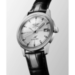 Description mouvement : Mouvement mécanique à remontage automatique oscillant à 36 000 vibrations par heure, équipé d’un ressort spiral en monocristal de silicium et doté d’une réserve de marche jusqu’à 52 heures