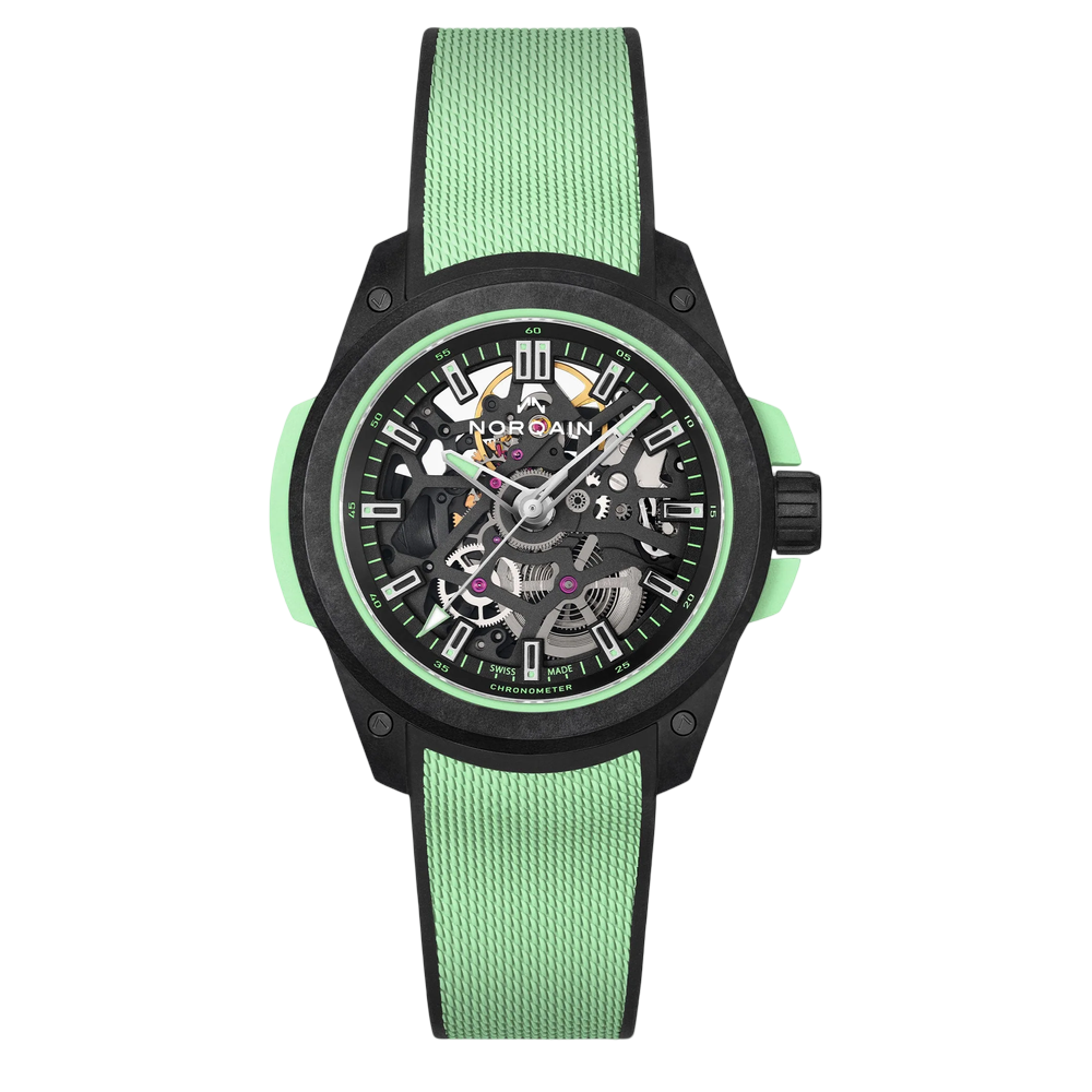 Cadran noir squeletté avec impressions de couleur vert menthe