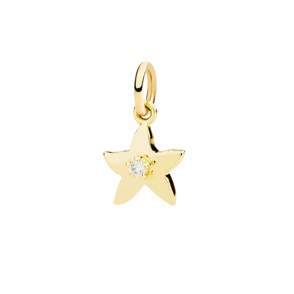 Pendentif stellina en or jaune 9 K avec 1 diamant blanc (0,03 ct). Cordon noir inclus.